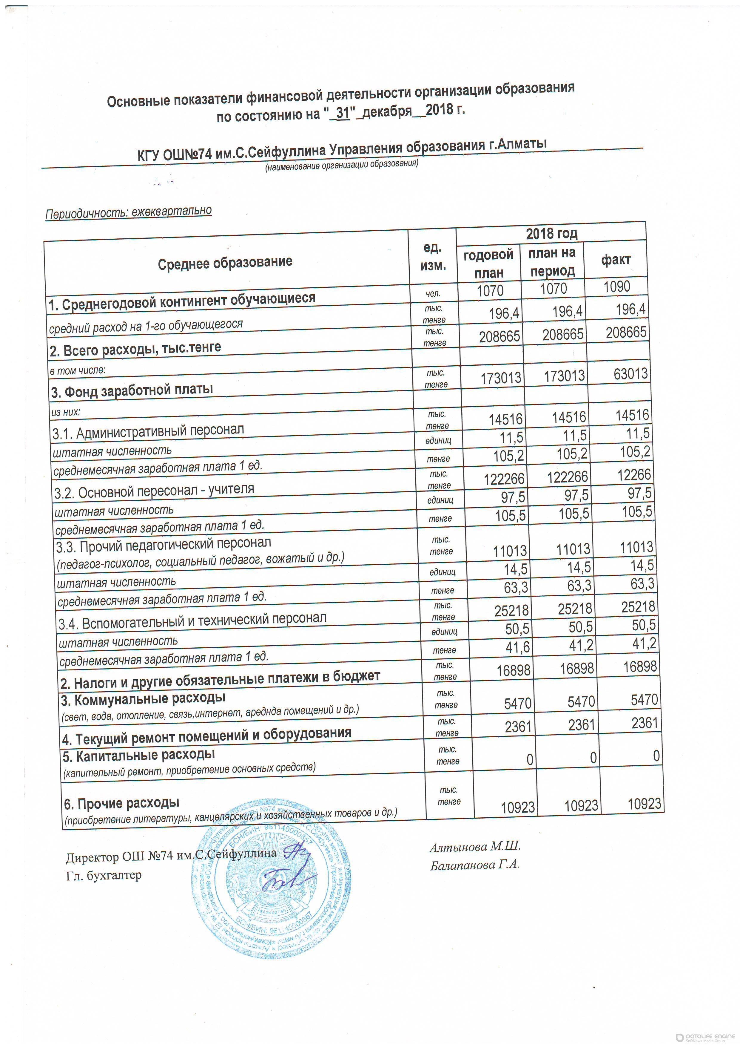 08 қаңтар 2019 0 1 2 3 4 5 Основные показатели финансовой деятельности организации образования по состоянию на "31" декабря 2018 г. Осы беттің QR-коды:QR-код этой страницы: