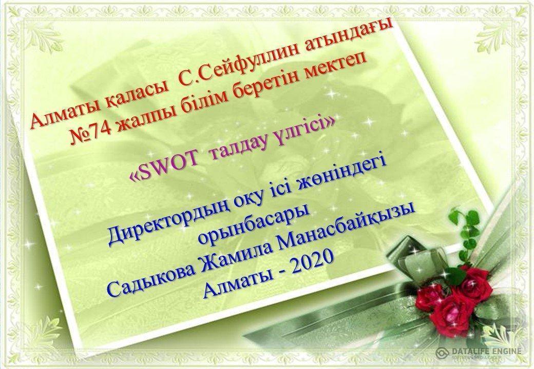 27 қазан 2020 0 1 2 3 4 5 "SWOT талдау үлгісі" семинар. Семинар "Модель SWOT-анализа". "SWOT талдау үлгісі" семинар. Семинар "Модель SWOT-анализа". Осы беттің QR-коды:QR-код этой страницы: