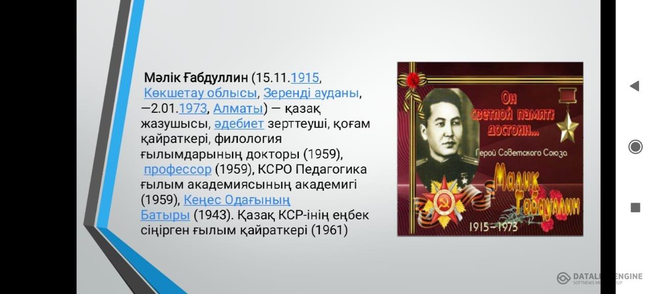 "Кітаптар әлемінде" интеллектуалды Қазақ жазушыларымен таныстыру . Мәлік Ғабдуллинге 105 жыл Знакомство с интеллектуалами казахских писателей в «мире книг». 105 лет Малику Габдуллину
