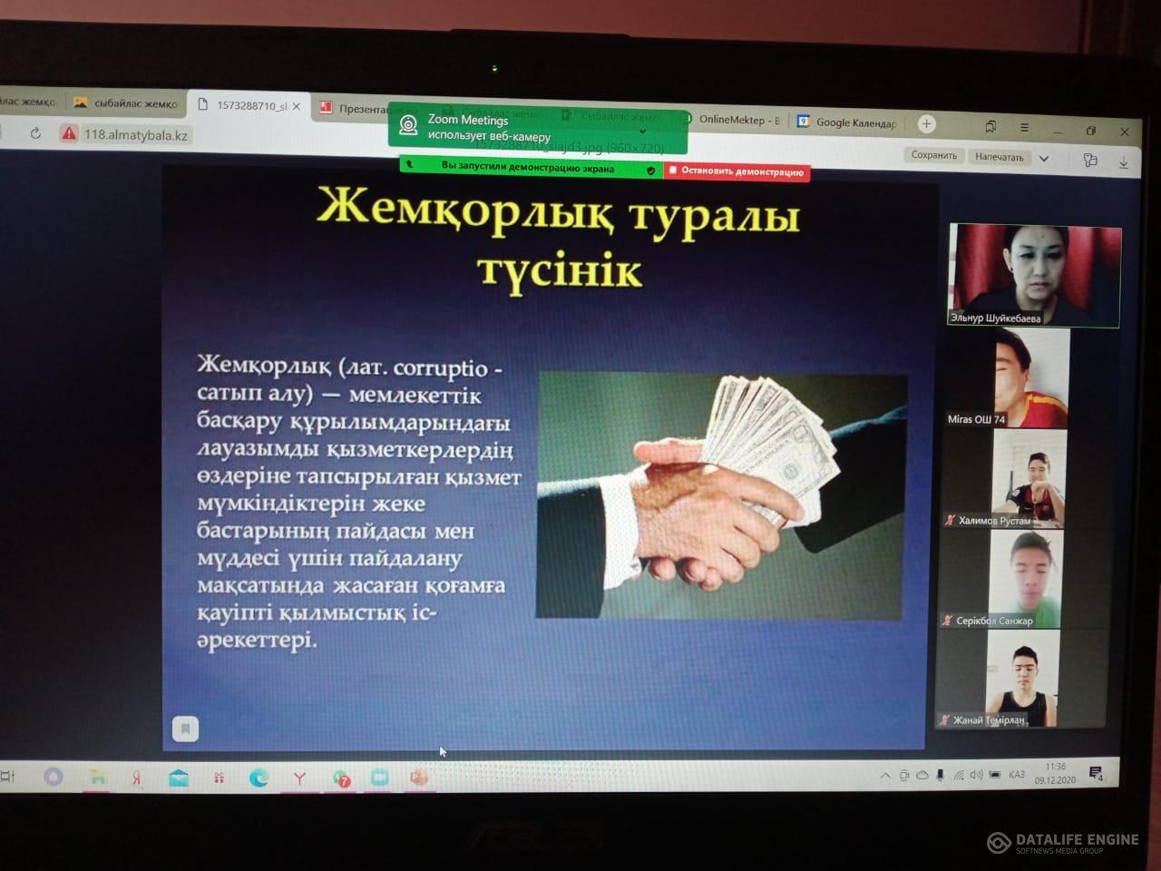 «Сыбайлас жемқорлық-қоғамның өзекті мәселесі»тақырыбында сыныптан тыс қашықтықтан конференция сабақ.
