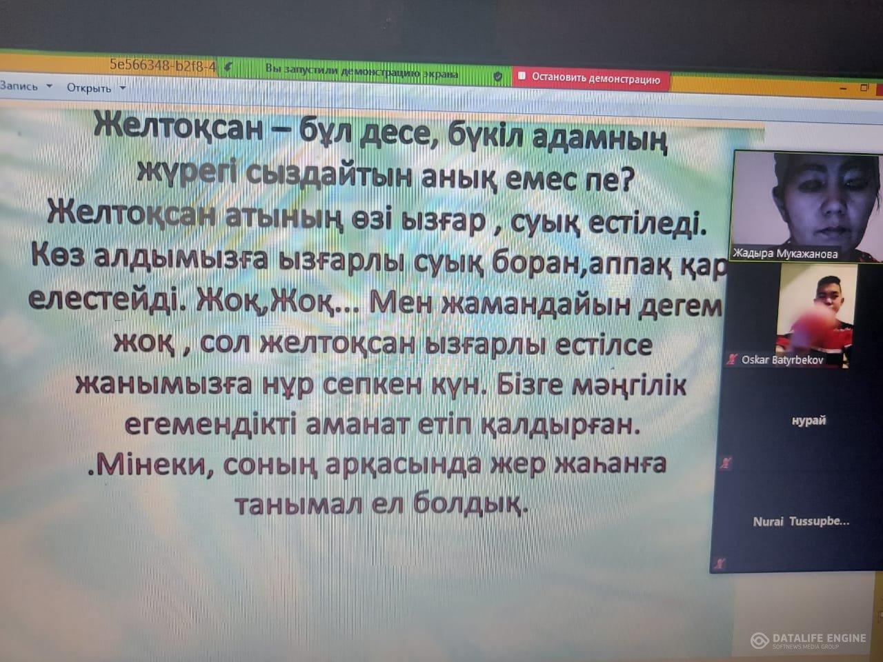 15 желтоқсан 2020 0 1 2 3 4 5 ""Тәуелсіздік- тұғырым" ашық сынып сағаты. «Независимость — это стойка» час открытых занятий ""Тәуелсіздік- тұғырым" ашық сынып сағаты. «Независимость — это стойка» час открытых занятий Осы беттің QR-коды:QR-код этой страницы:
