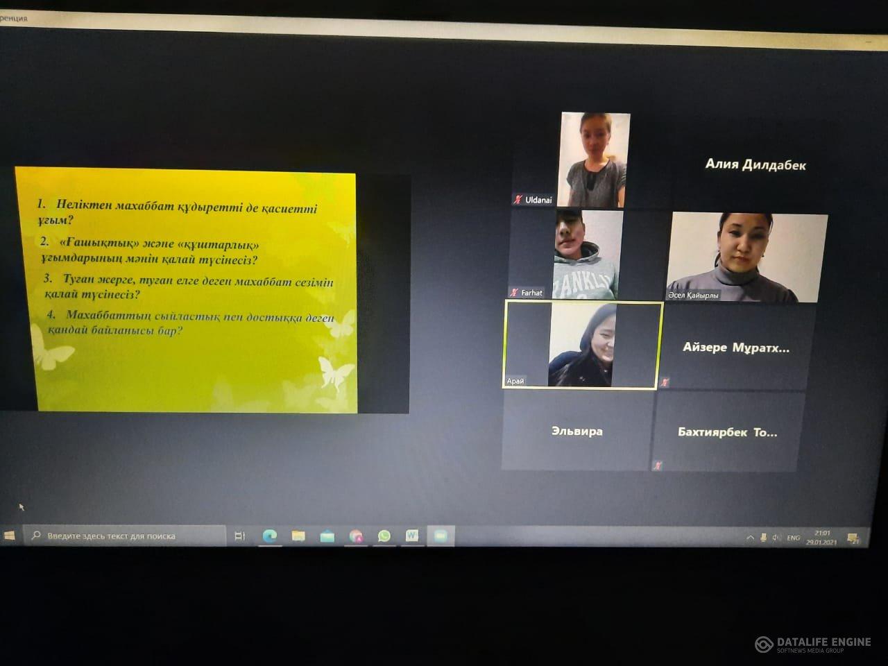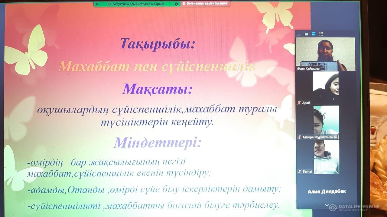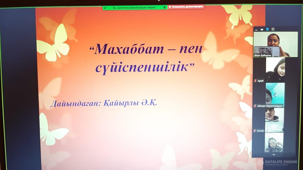 Мектеп психологы Қайырлы Әсел Қайырлықызы 10 А сыныбында қашықтықтан "Махаббат пен сүйіспеншілік" тақырыбында онлайн тренинг өтті.