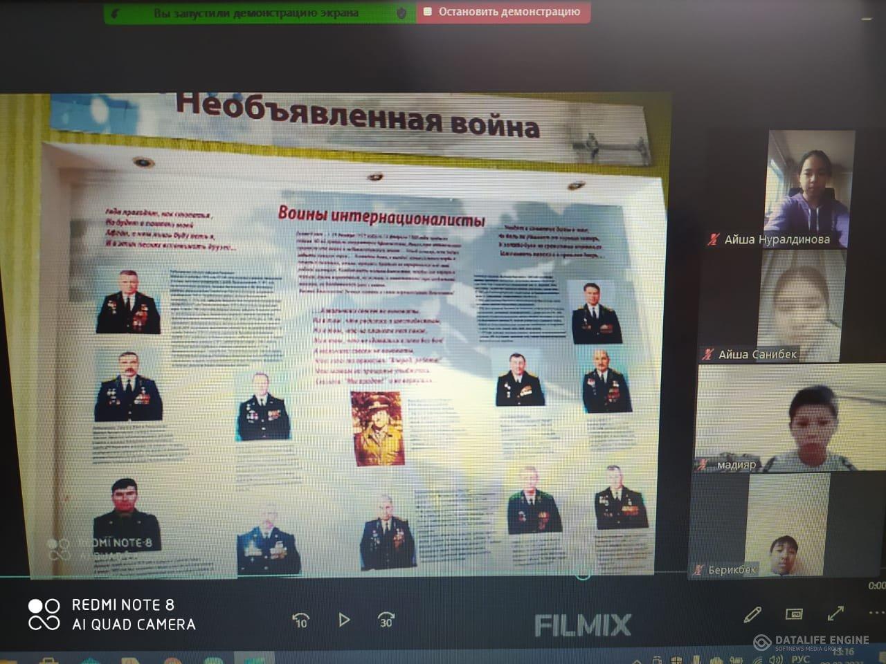 13 ақпан 2021 0 1 2 3 4 5 "Ауған соғысының ардагерлері" мектеп мұражайына онлайн саяхат Мектеп мұражай жетекшісі Әбиева Балауса Жеңісбекқызы 7 сыныптарда мұражайдағы "Ауған соғысының ардагерлеріне" арналған бұрышпен және құнды заттарымен қашықтықтан таныстырды. Осы беттің QR-коды:QR-код этой страницы: