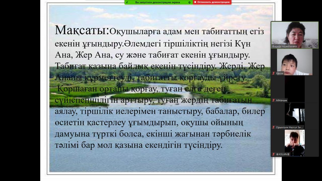 Экологиялық білім берудің жалпыреспубликалық апталық жоспарына сәйкес 5А, 5 Ә сыныптарында «Табиғатты аялайық!» тақырыбында сыныптан тыс тәрбие сағаты ұйымдастырылды.