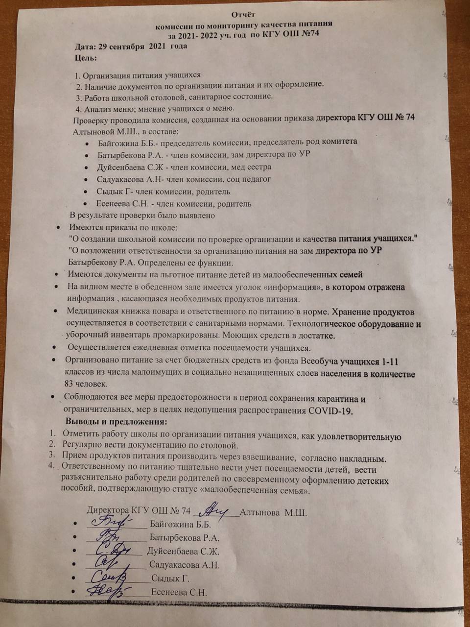 29 қыркүйек 2021 0 1 2 3 4 5 Отчет комиссии по мониторингу качества питания 29/09/21 Осы беттің QR-коды:QR-код этой страницы: