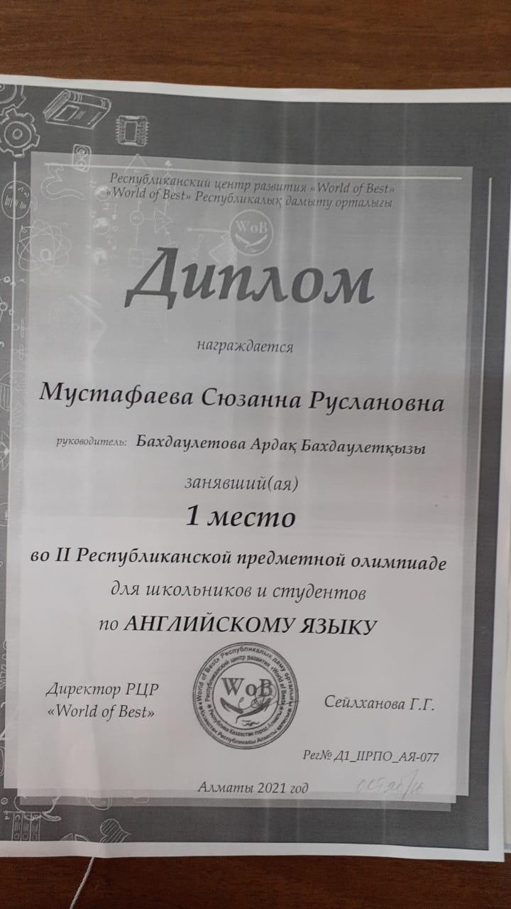 13 қараша 2021 0 1 2 3 4 5 Диплом 1 место Республиканская предметная олимпиада Осы беттің QR-коды:QR-код этой страницы: