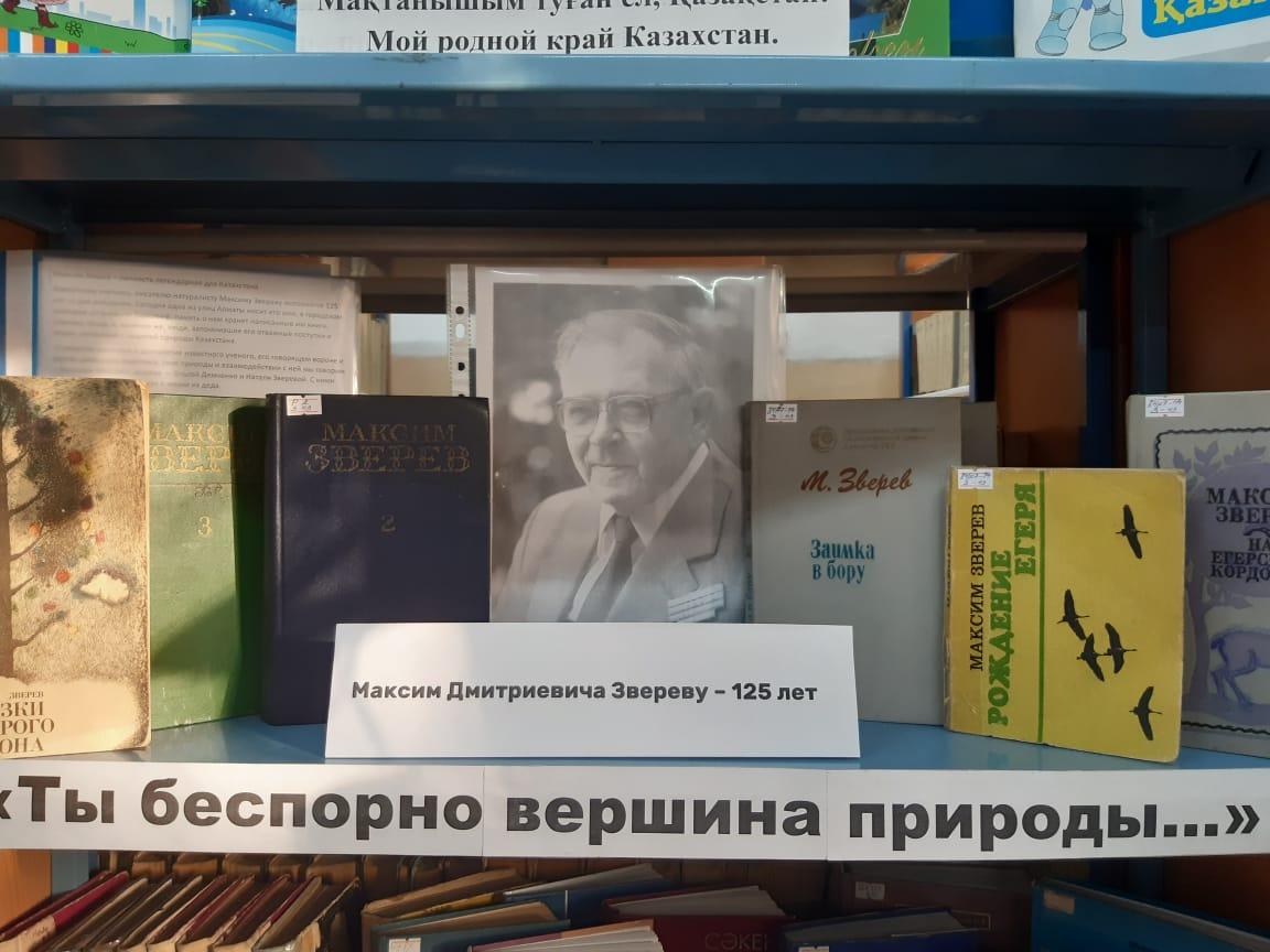 В школьной библиотеке оформлена тематическая полка «Ты беспорно вершина природы...» , посвященная 125 – летию со дня рождения Максим Дмитриевича Зверева. Советский учёный и писатель-натуралист, автор книг о природе, животных.