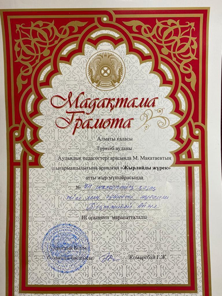 15 ақпан 2022 0 1 2 3 4 5 "Мұқағали Мақатаев оқуы" сайысы. Конкурс «Мукагали Макатаевские чтения» Аудандық ұстаздар арасындағы "Мұқағали Мақатаев оқуы" сайысына қатысып Тоқташбай Айгүл қазақ тілі пән мұғалімі 3- орын алды. 👏🏻👏🏻💐 Осы беттің QR-коды:QR-код этой страницы: