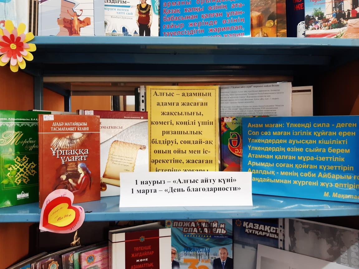 01 наурыз 2022 0 1 2 3 4 5 Мектеп кітапханасында Алғыс айту күніне байланысты кітап сөресі қойылды Алғыс - адамның адамға жасаған жақсылығы, көмегі, көңілі үшін ризашылық білдіруі, сондай-ақ оның ойы мен іс-әрекетіне, жасаған істеріне жоғары баға беруі. Осы беттің QR-коды:QR-код этой страницы: