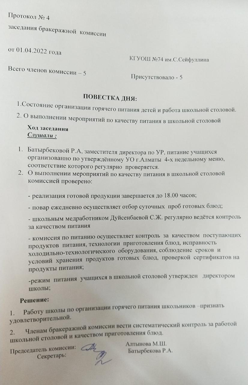 08 сәуір 2022 0 1 2 3 4 5 Протокол №4 заседания бракеражной комиссии Осы беттің QR-коды:QR-код этой страницы: