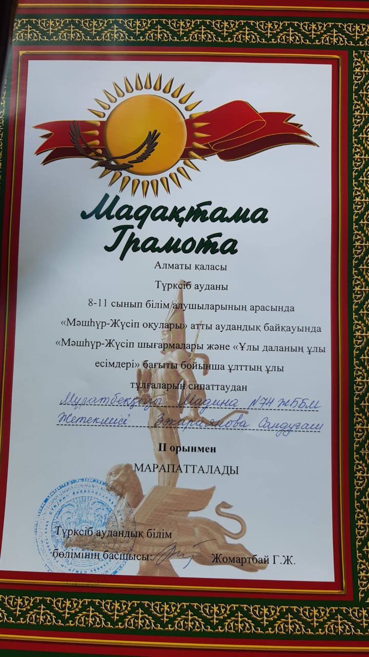 Коммунальное государственное учреждение «Общеобразовательная школа № 74 имени С.Сейфуллина» Управления образования города Алматы