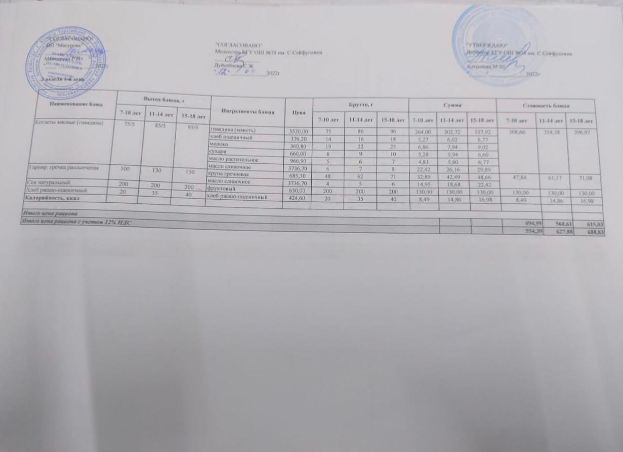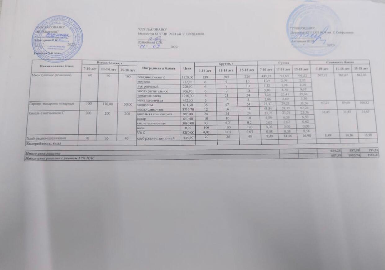 Мәзір/меню 12/09-16/09/2022