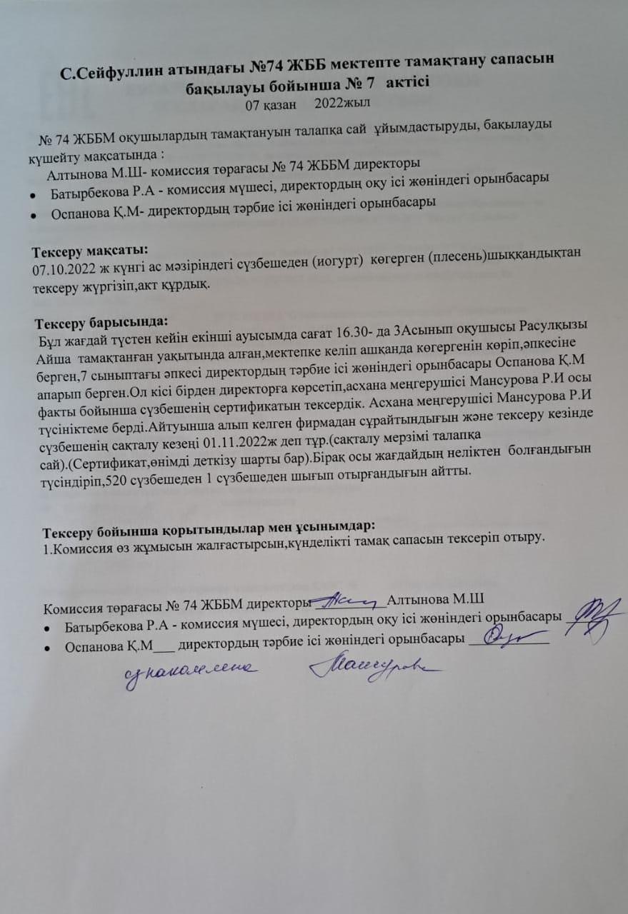 Коммунальное государственное учреждение «Общеобразовательная школа № 74 имени С.Сейфуллина» Управления образования города Алматы