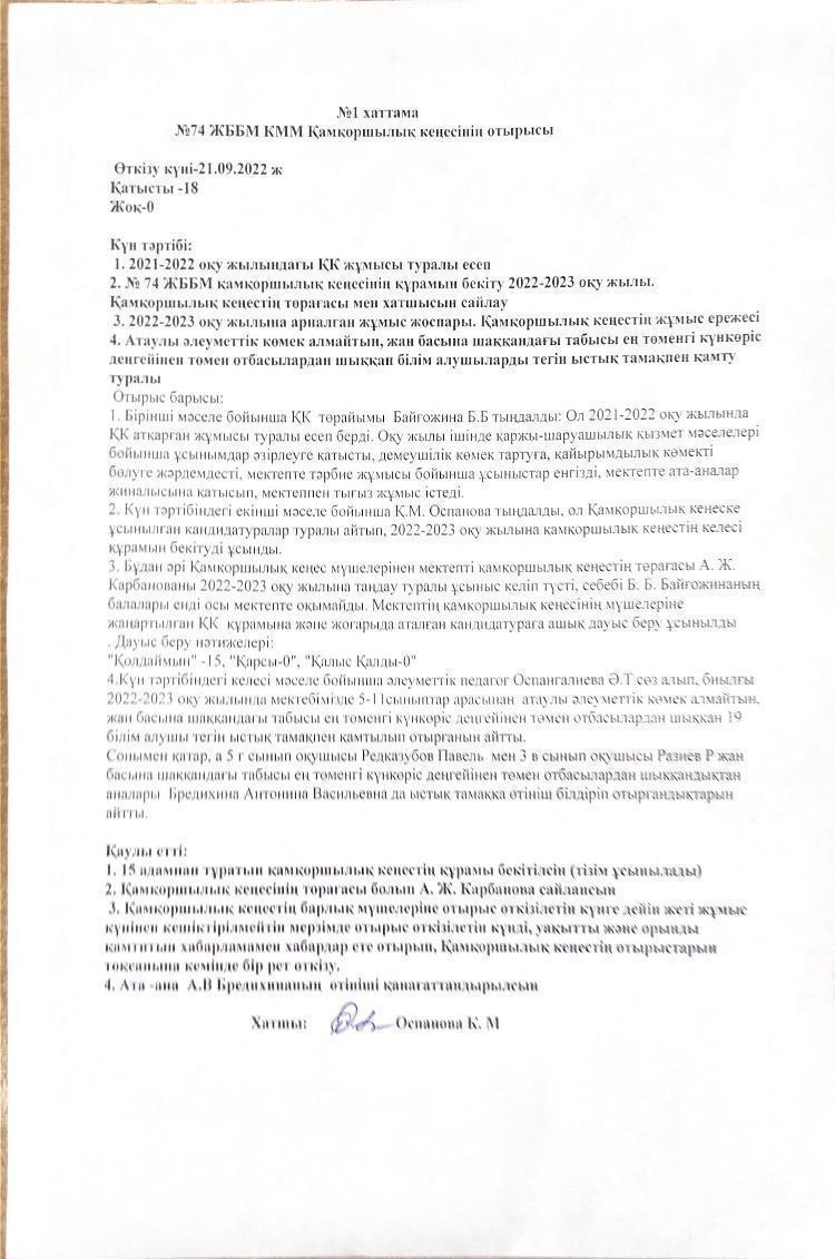 21 қыркүйек 2022 0 1 2 3 4 5 Қамқоршылық кеңес отырысы №1 хаттама. Протокол заседания Попечительского совета № 1 Осы беттің QR-коды:QR-код этой страницы: