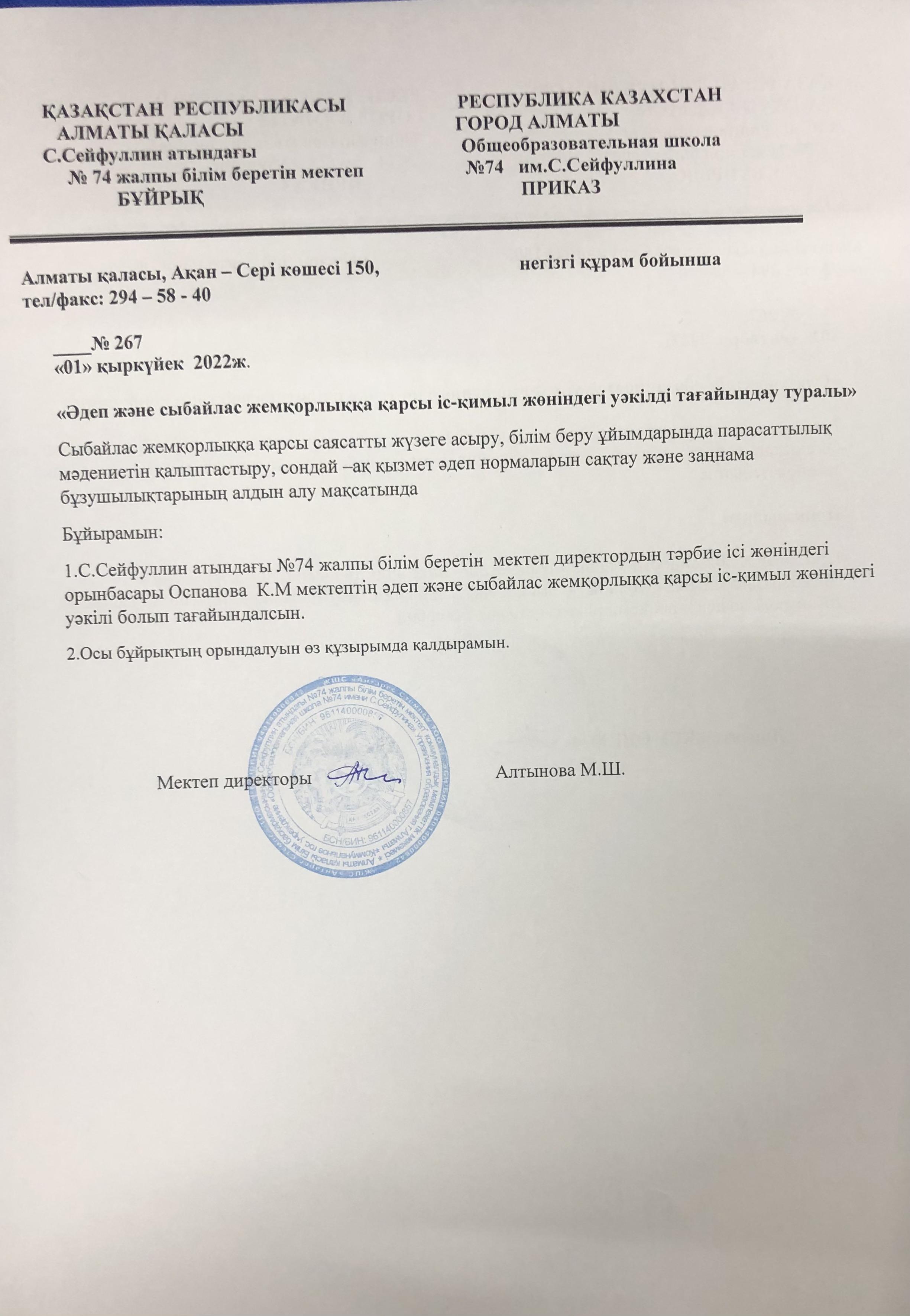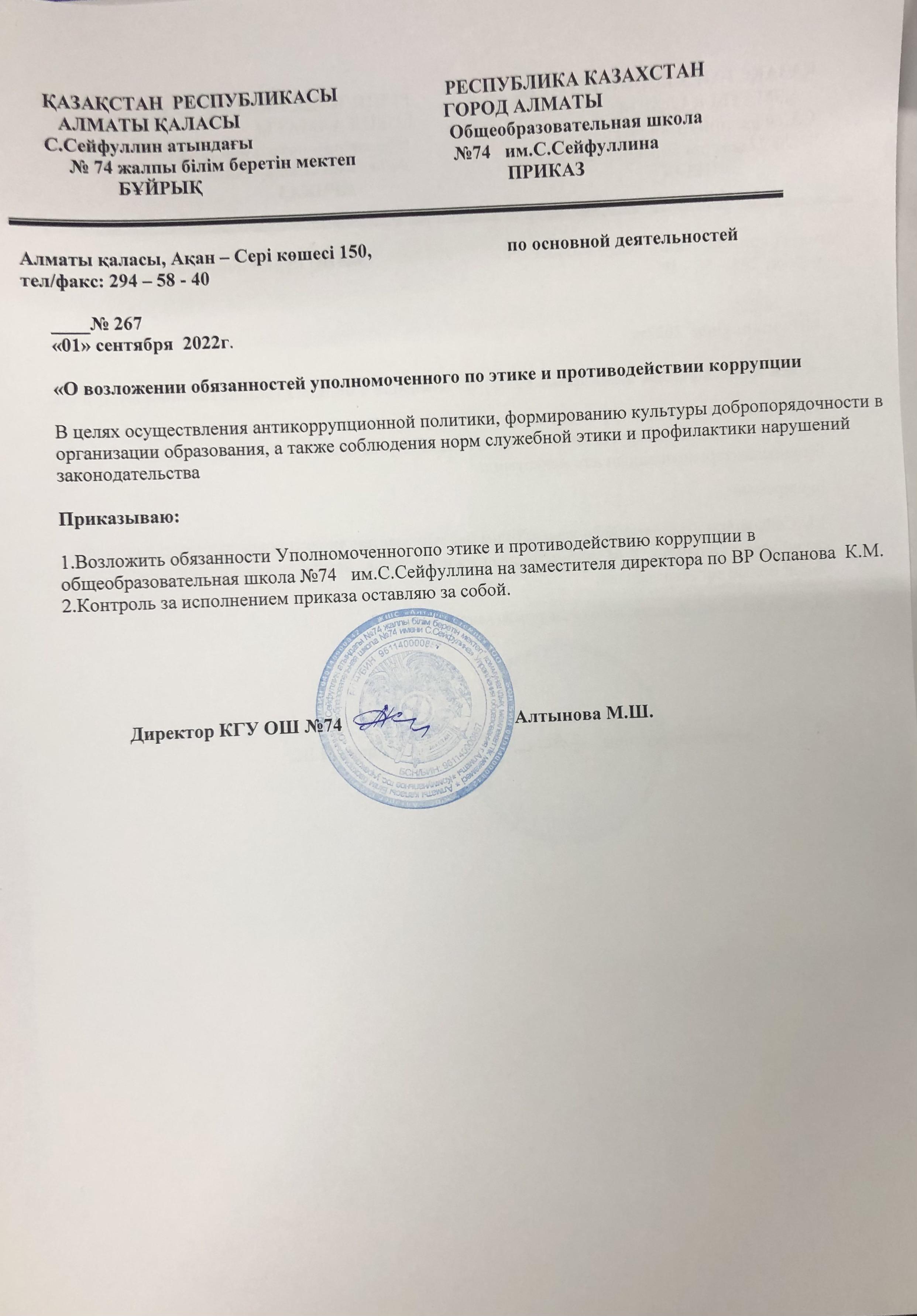 01 қыркүйек 2022 0 1 2 3 4 5 "Әдеп пен сыбайлас жемқорлыққа қарсы іс-қимыл жөніндегі уәкілді тағайындау туралы" бұйрық" Осы беттің QR-коды:QR-код этой страницы: