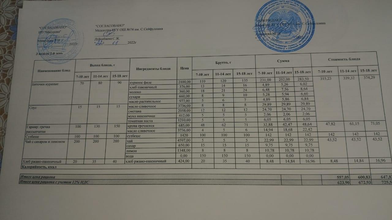 Мәзір караша-желтоқсан 2022. Меню ноябрь-декабрь 2022.