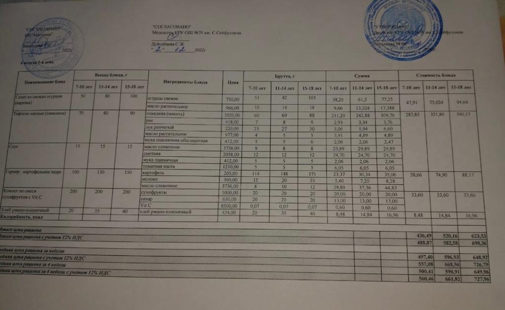 Мәзір караша-желтоқсан 2022. Меню ноябрь-декабрь 2022.