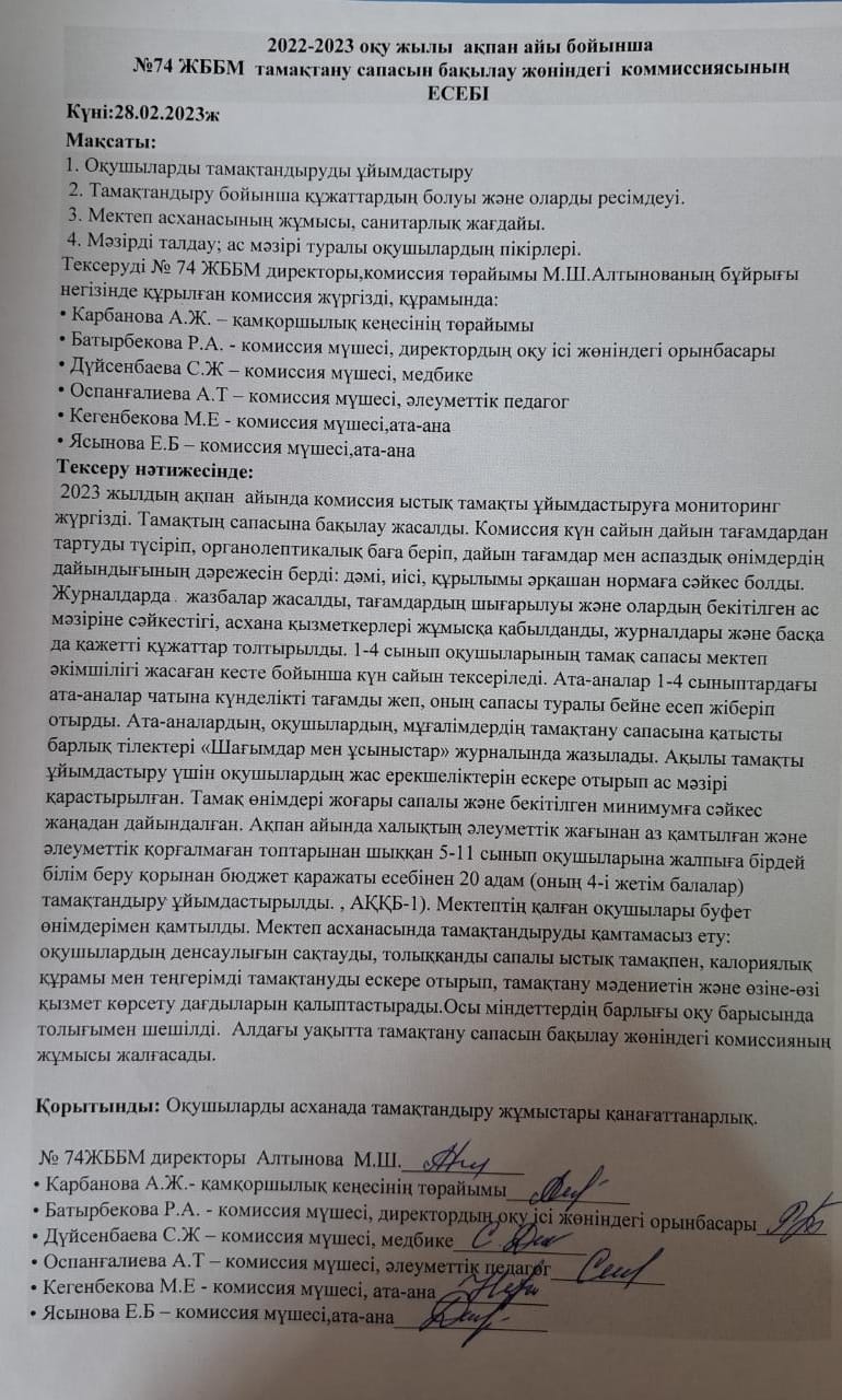 Бракераждық комиссия асханада тексеріс жүргізді. Бракеражная комиссия провела проверку в столовой