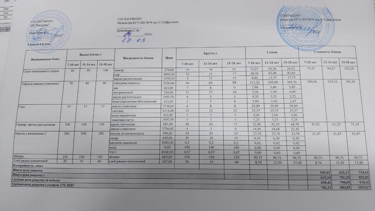 Мәзір/меню 13.03-17.03.23