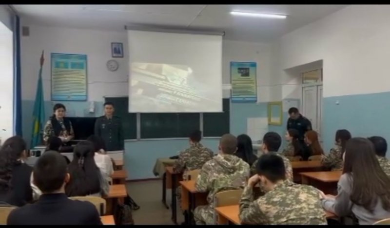 Сағадат Нұрмағамбетов атындағы құрлық әскерлерінің әскери институтының өкілі 10-11- сынып оқушыларымен кәсіптік бағдар беру мақсатында әңгіме жүргізді.