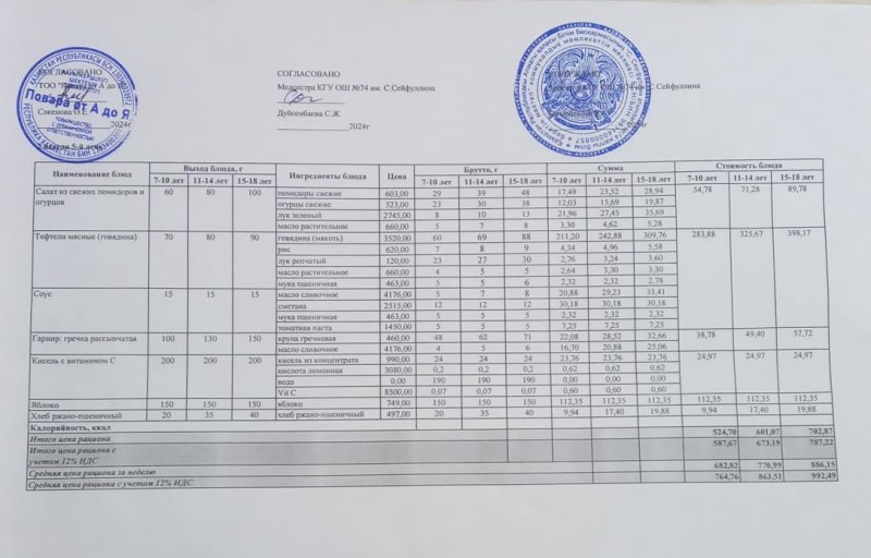 Мәзір/Меню 07.11.2024