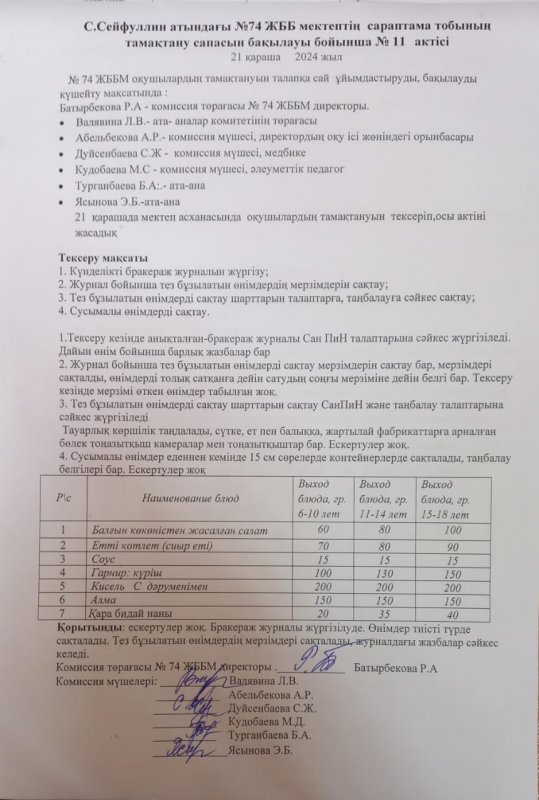 22 қараша 2024 0 1 2 3 4 5 Оқушылардың тамақпен қамтамасыз етуілінің дұрыс ұйымдастырылуын бақылау актісі №11 Осы беттің QR-коды:QR-код этой страницы: