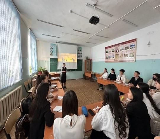 Психолог школы Қайырлы А.Қ. провела тренинга по правовому просвещению в 10-х классах на тему: «Что я знаю о праве».