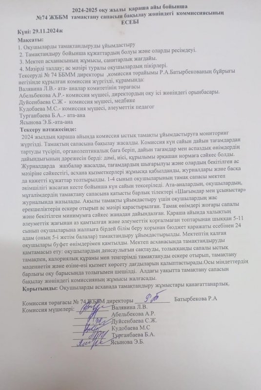 02 желтоқсан 2024 0 1 2 3 4 5 Тамақтану сапасы бойынша есеп./ Отчет комиссии по мониторингу качестве питания. Осы беттің QR-коды:QR-код этой страницы: