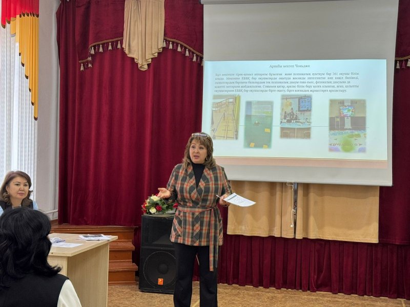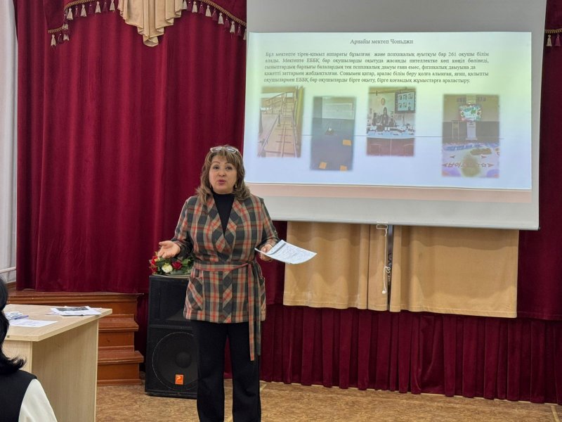 Оңтүстік корея еліне инклюзивті білім беру бойынша оқу-тәжірибе алмасып келген директордың оқу ісі жөнідегі орынбасарлары Хасенова А.Р., Абельбекова А.Р. педагогикалық отырыста мектеп ұжымына Корея Республикасының инклюзивті білім жүйесімен таныстырды