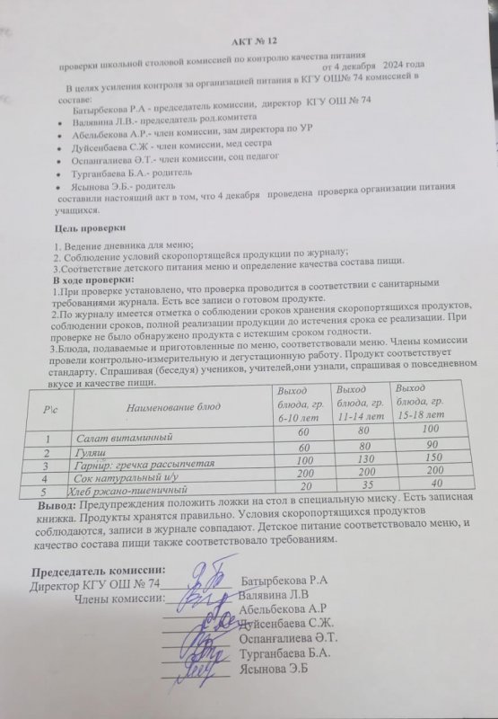 11 желтоқсан 2024 0 1 2 3 4 5 Оқушылардың тамақпен қамтамасыз етуілінің дұрыс ұйымдастырылуын бақылау актісі №12 Осы беттің QR-коды:QR-код этой страницы: