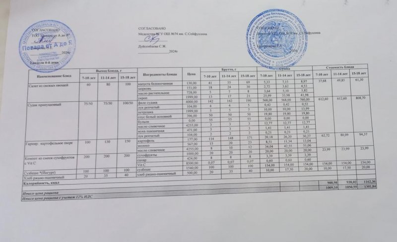 Мәзір/Меню 15.01.2025