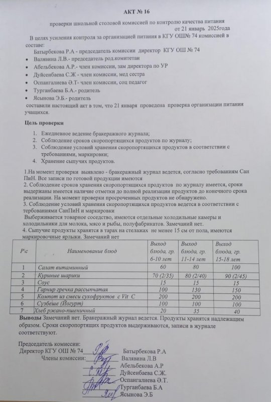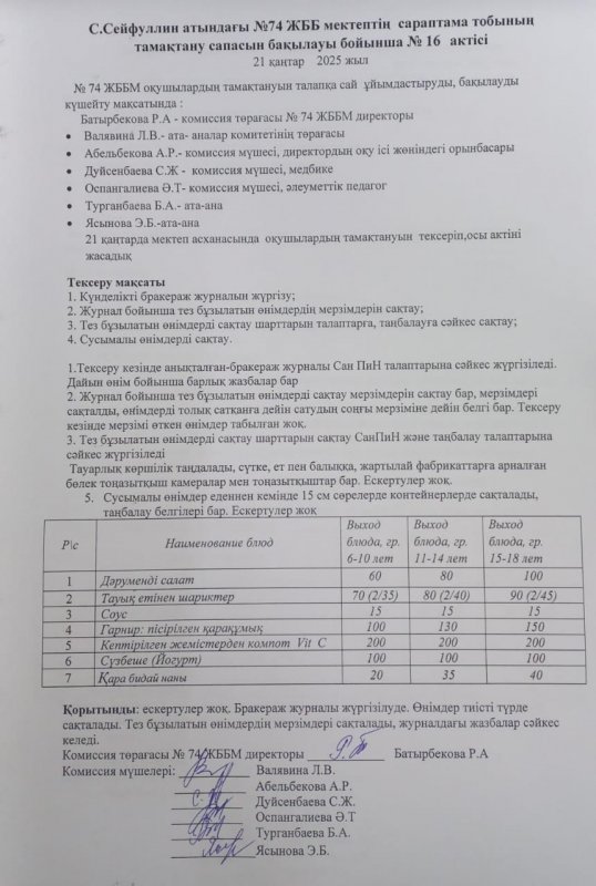 22 қаңтар 2025 0 1 2 3 4 5 Оқушылардың тамақпен қамтамасыз етуілінің дұрыс ұйымдастырылуын бақылау актісі №16 Осы беттің QR-коды:QR-код этой страницы: