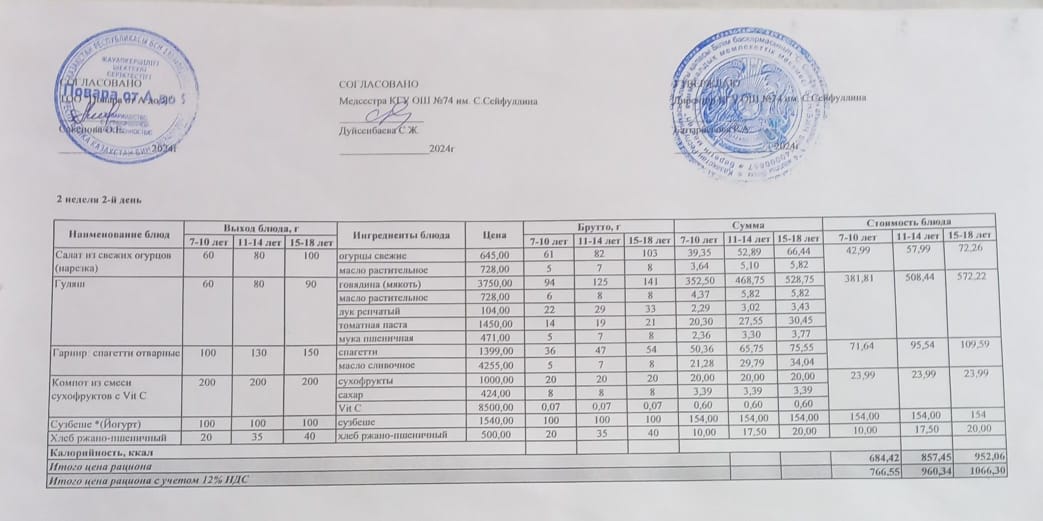Мәзір/Меню 13.01.2024