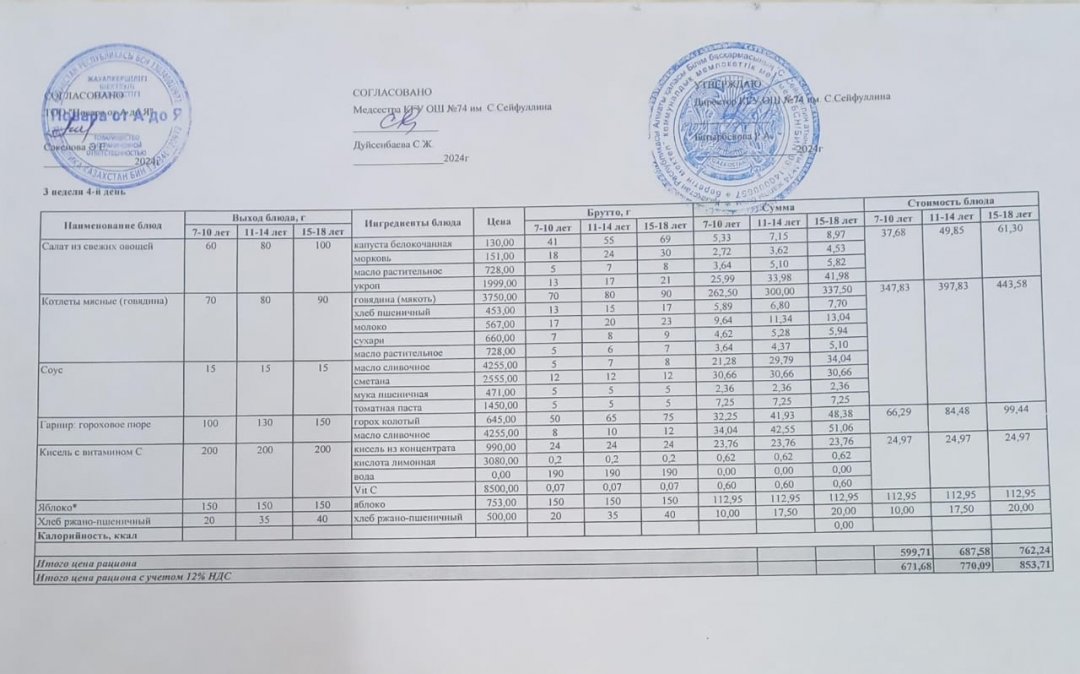 Мәзір/Меню 13.01.2024