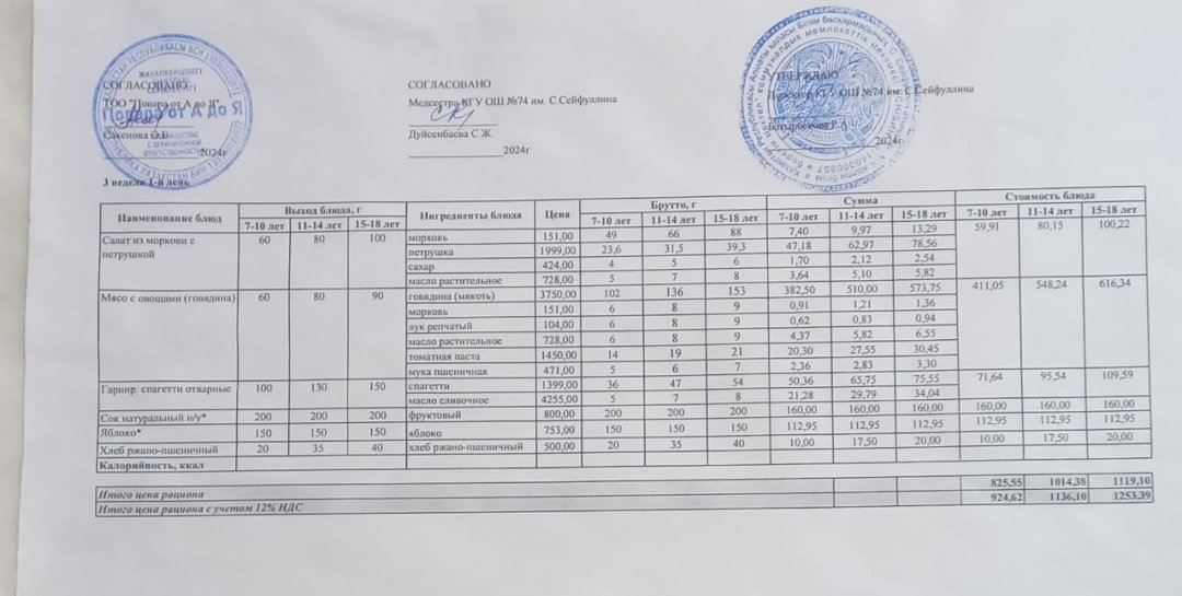 Мәзір/Меню 07.03.2025