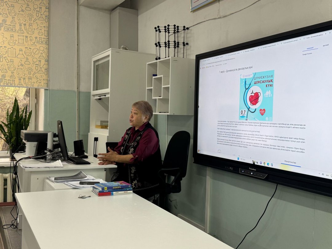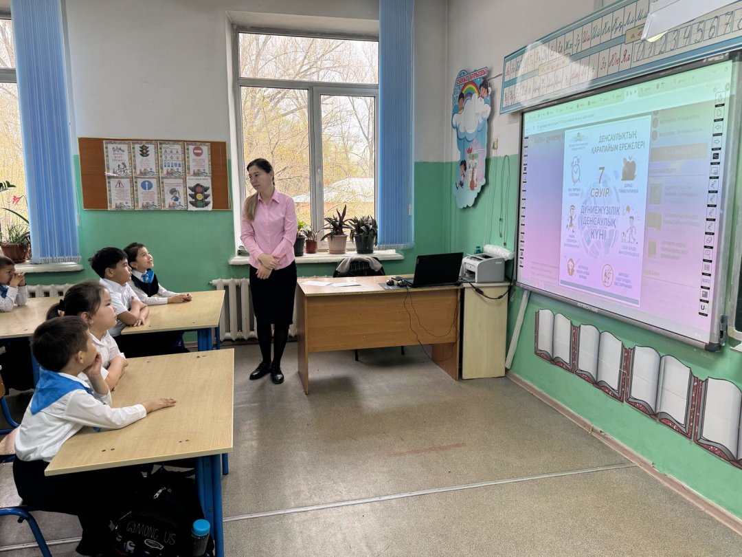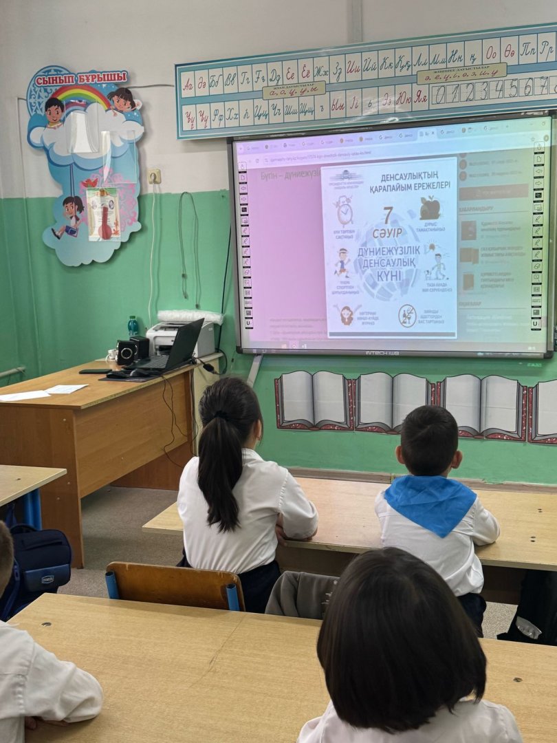 7 сәуір — Халықаралық денсаулық сақтау күніне орай сынып сағаты өткізілді. Бұл күні дүниежүзі бойынша адамдардың денсаулығын сақтау мен қорғаудың маңыздылығын атап өтеді. Сынып сағатында оқушыларға денсаулықтың мәні, дұрыс тамақтану, спортпен айналысу, жеке гигиена, стресстен арылу сияқты мәселелер туралы әңгіме жүргізілді.