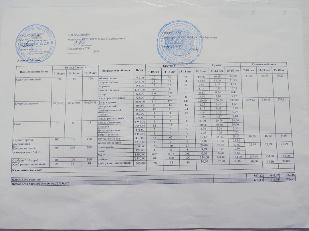 Мәзір/Меню 07.03.2025