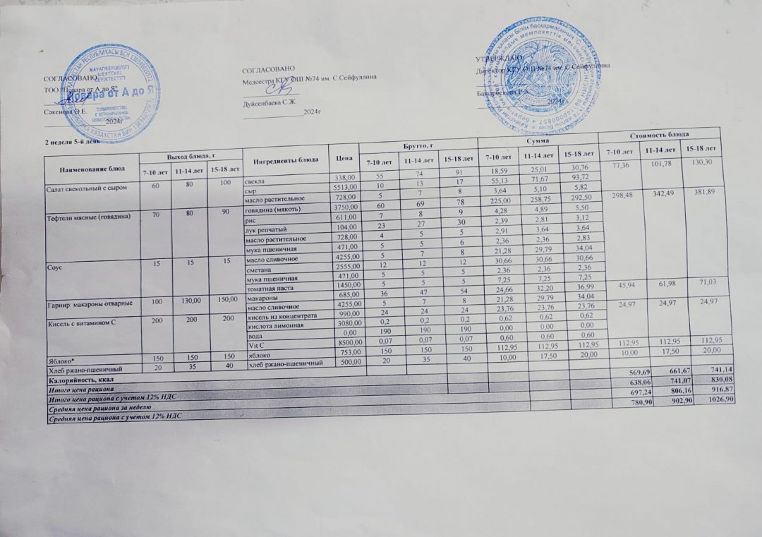 Мәзір/Меню 11.04.2025