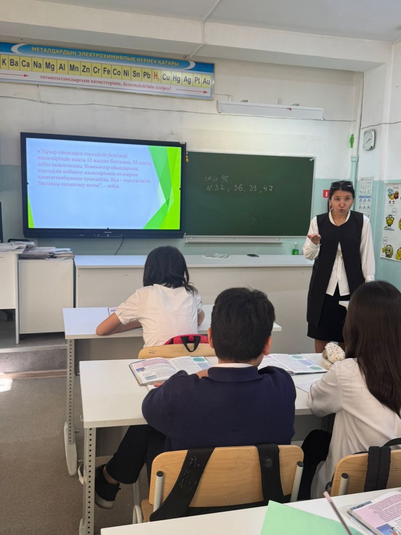 Әңгіме барысында оқушыларға лудоманияның психологиялық және әлеуметтік зардаптары, тәуелділікке әкелетін факторлар мен оны болдырмау жолдары туралы ақпарат берілді. Қатысушылар өз ойларымен бөлісіп, тақырыпқа қатысты сұрақтар қойды.