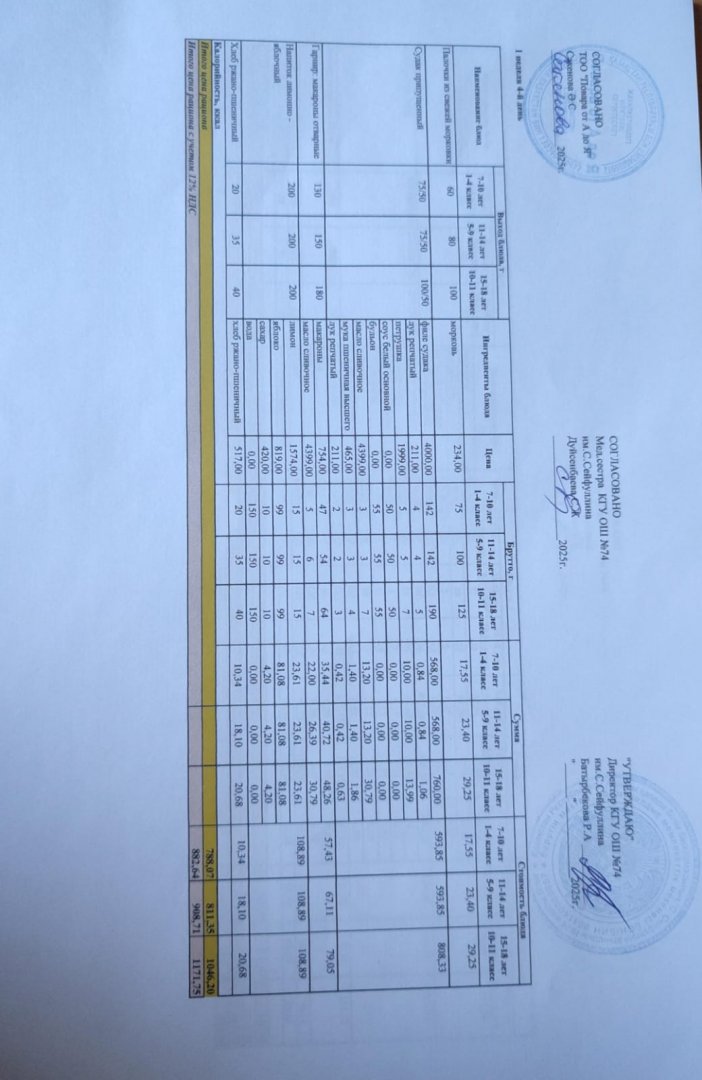 Мәзір/Меню 03.04.2025