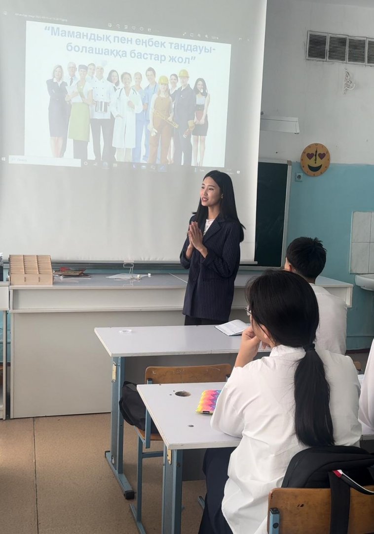 «Адал азамат - біртұтас тәрбие» бағдарламасы аясында 10-сынып оқушыларымен «Мамандық пен еңбек таңдауы - болашаққа бастар жол» атты сынып сағаты өткізілді. Іс-шараны профориентатор Әуелхан Ш.Д. сынып жетекшімен бірлесе ұйымдастырып, оқушыларға мамандық тандаудың, маңызы, еңбекке адалдық пен жауапкершілік туралы терең түсінік берілді.