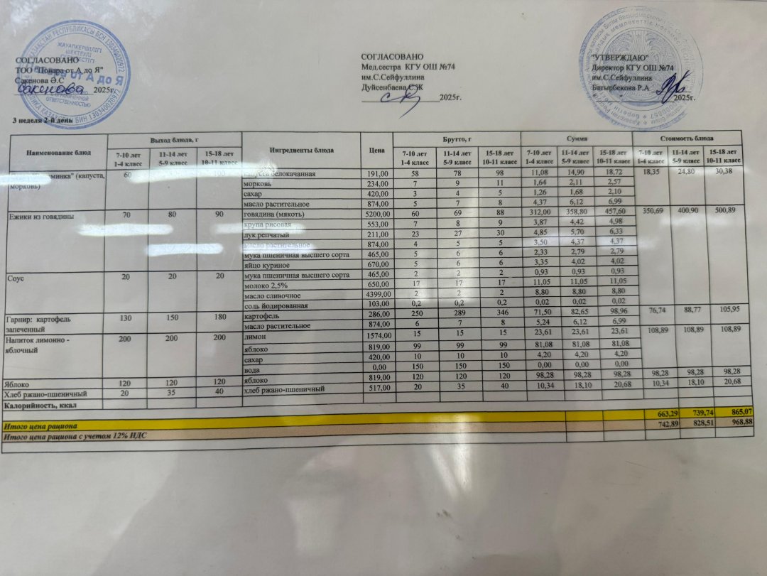 Мәзір/Меню 07.03.2025