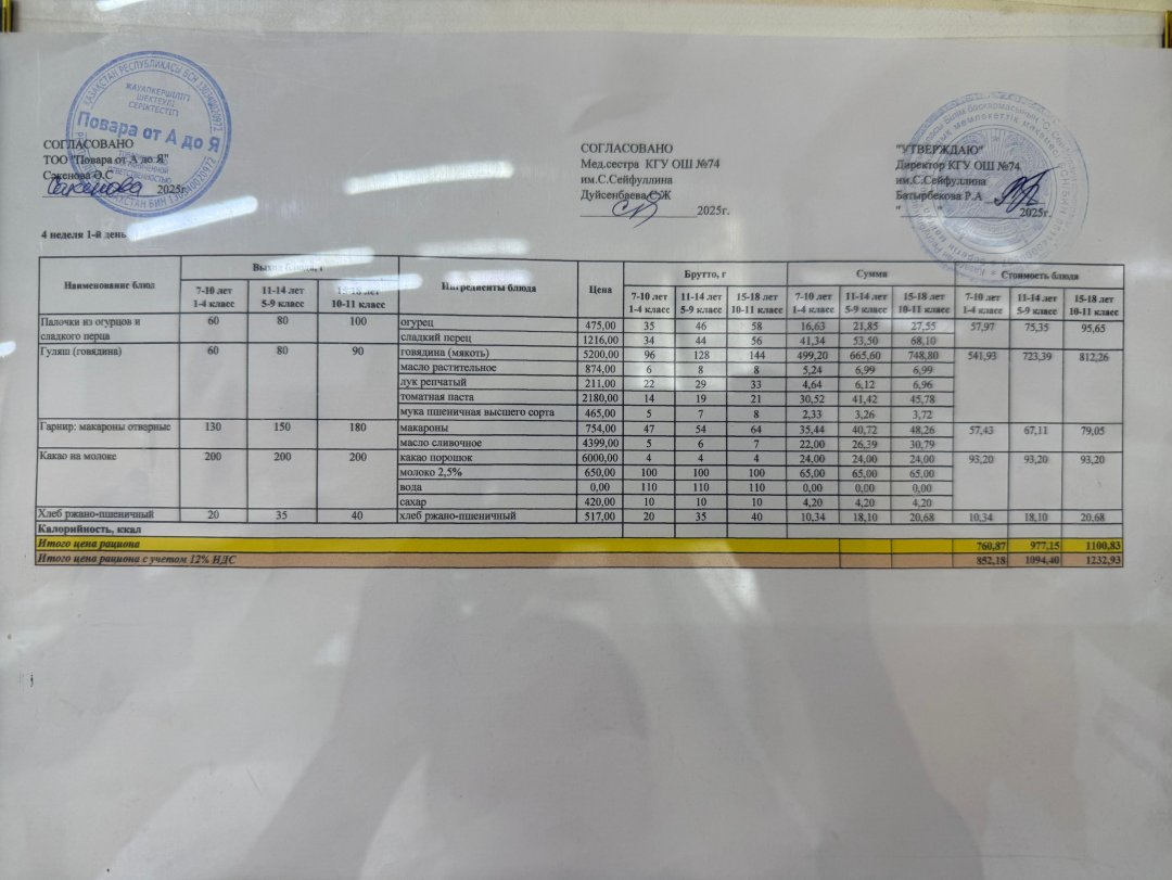 Мәзір/Меню 26.05.2025