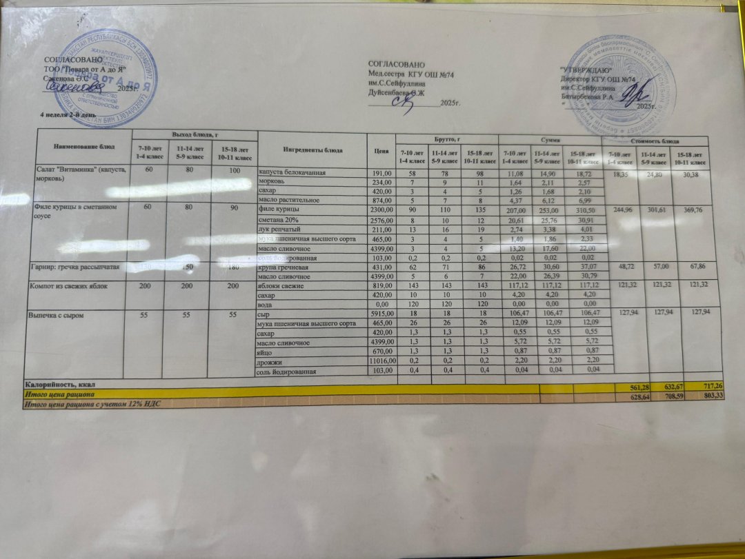 Мәзір/Меню 07.03.2025