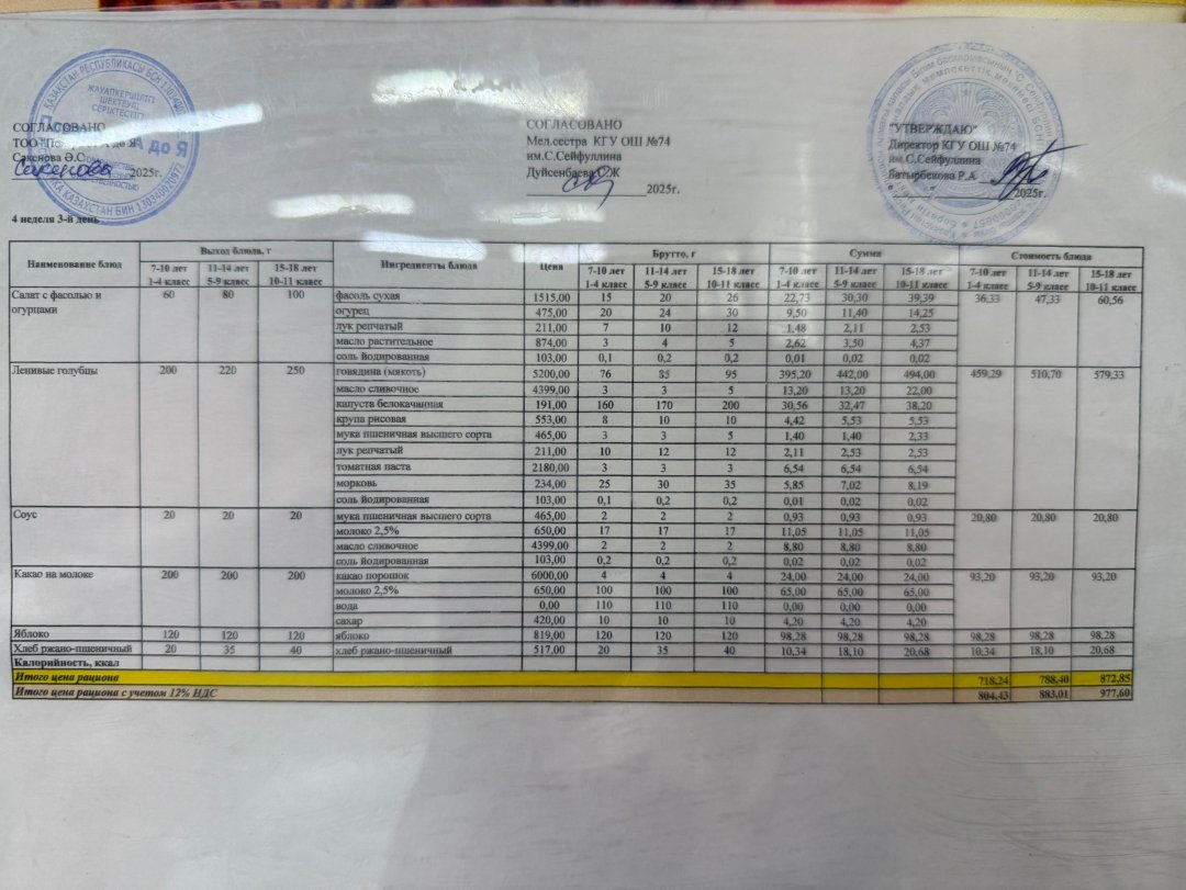 Ата-аналар кезекті асхана мәзірімен танысып, өз пікірлерін білдірді/ Во время очередной проверки столовой родители ознакомились с меню.