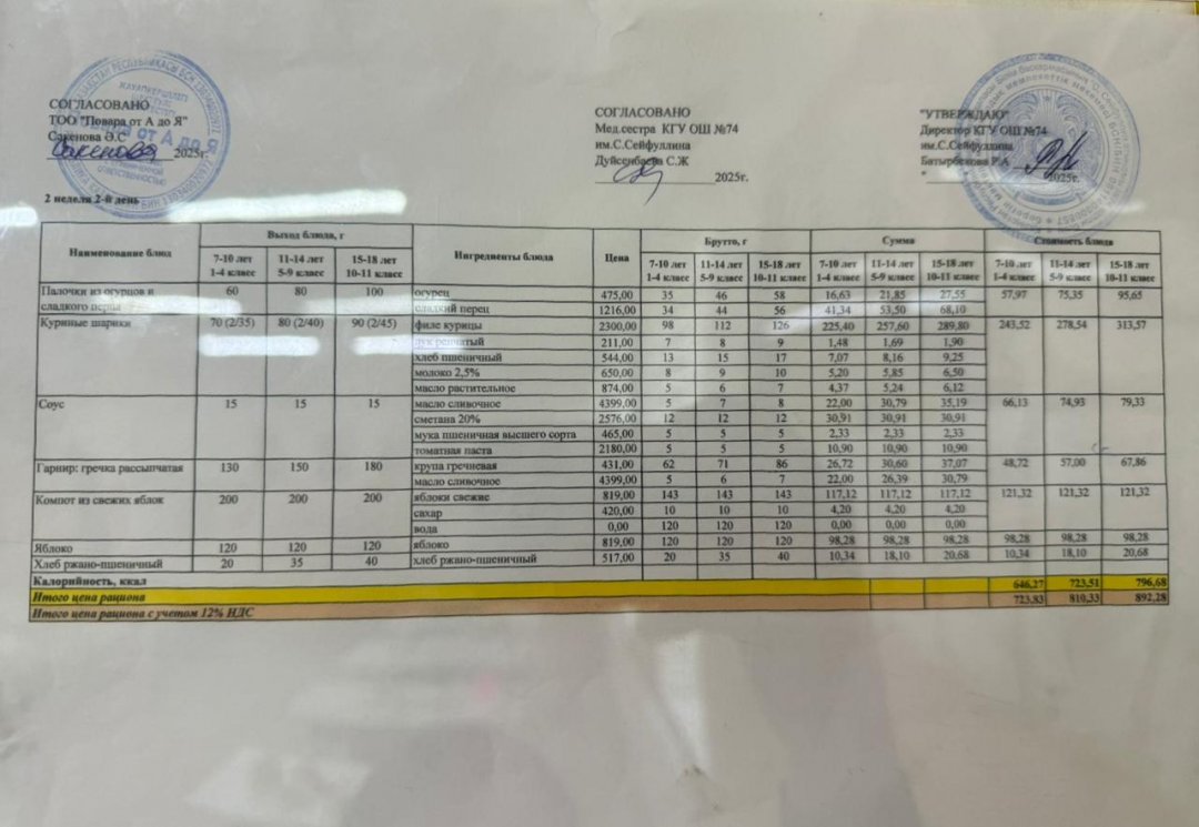 Мәзір/Меню 07.10.2025