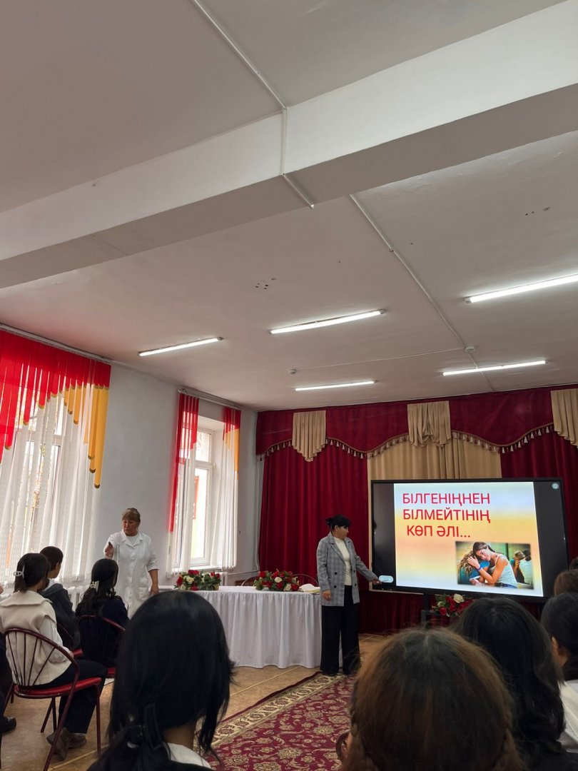 6 қараша 2025 жылы мектебімізде "Қыздың сұлулығы- оның тәрбиесінде" тақырыбында қыздар жиналысы болып өтті. Жиналыста мектебіміздің медбикесі қыздарға "Ерте жүктілік салдары" тақырыбында қыздармен әңгіме жүргізді. Сонымен қатар қыдардың тәртібі, сырт келбеті, көпшілікте өзін-өзі ұстауы туралы да айтылып өтті.