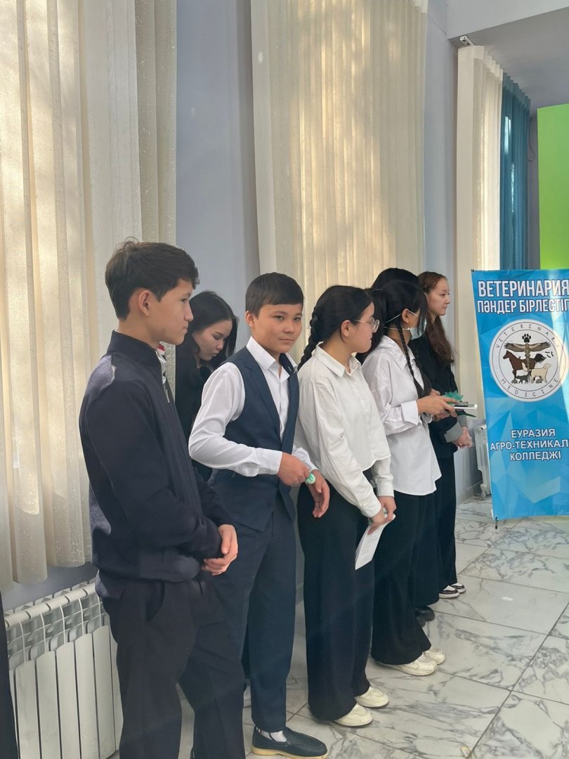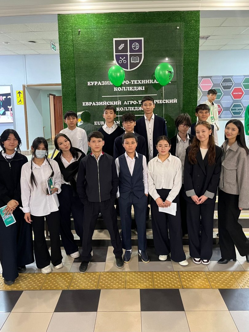 2025 жылдың 17 қазан күні 9-сынып оқушылары “Еуразия агро-техникалық колледжіне” ашық есік күніне барып, оқу мекемесімен жақын танысты. Шара барысында колледж өкілдері оқушыларға оқу орнының мамандықтары, білім беру мүмкіндіктері және материалдық-техникалық базасы туралы толық таныстыру жұмыстарын жүргізді.