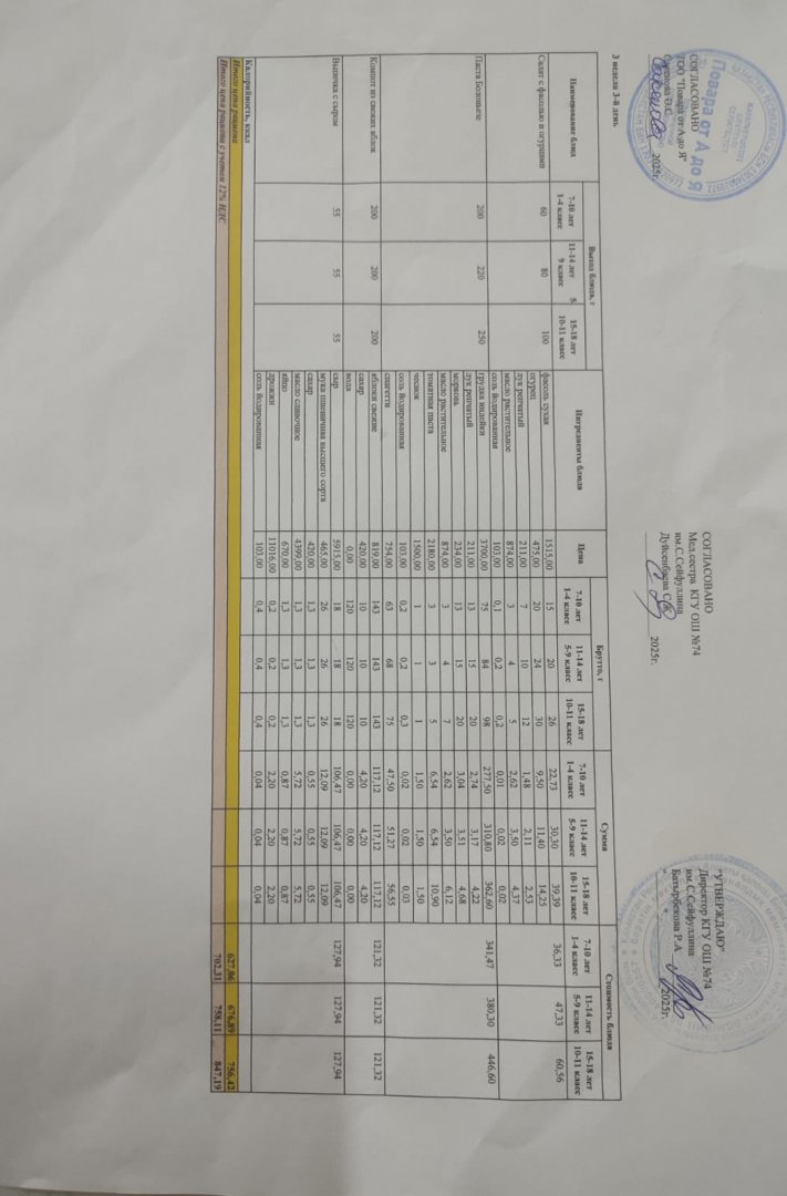 Мәзір/Меню 19.11.2025
