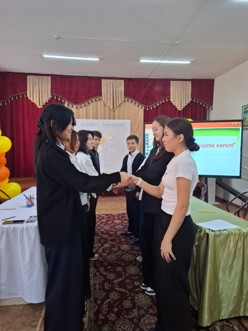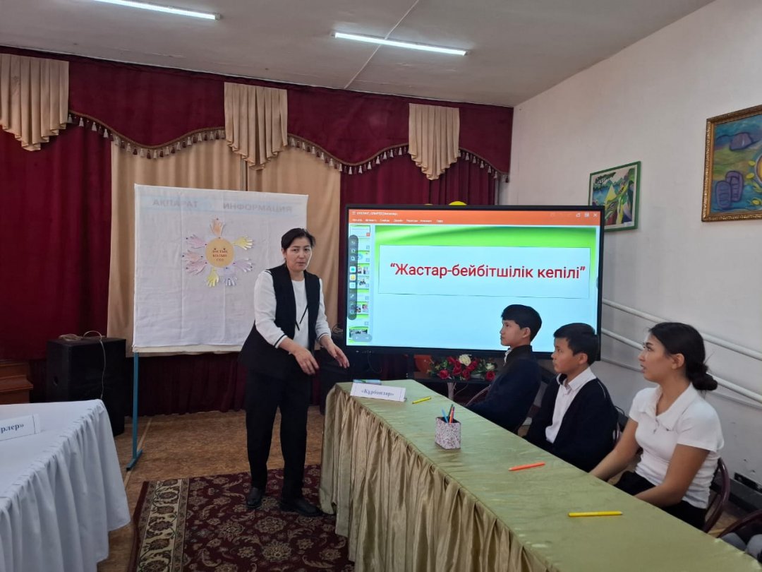 2025 жылдың 15-25 қараша аралығында "Дүниежүзілік балалар күніне арналған республикалық онкүндік" аясында 20.11.2025 жылы "Жастар-бейбітшілік кепілі тақырыбында 9 сынып оқушыларымен тренинг өткізілді. Оқушыларға төзімділік (толеранттылық), өзара сыйластық, келіссөз жүргізу және жанжалды бейбіт жолмен шешу дағдыларын, сонымен қатар мектептегі буллингті болдырмау, буллингтен қорғану жолдарын үйрету болды.
